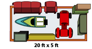 Furnishings from three or four bedroom house, Large household items, yard/patio furnishings, lots of boxes, surfboards, kayaks, Garage items, small boat, etc.